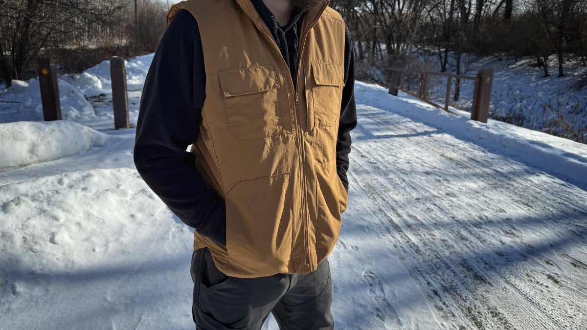That mentioned, layered appropriately, it dealt with the chilly simply fantastic. The only-digit day was completely manageable with the best underlayers. I believe the place this vest shines is in these transitional temps the place a full jacket is overkill however a hoodie alone leaves you just a little chilly.