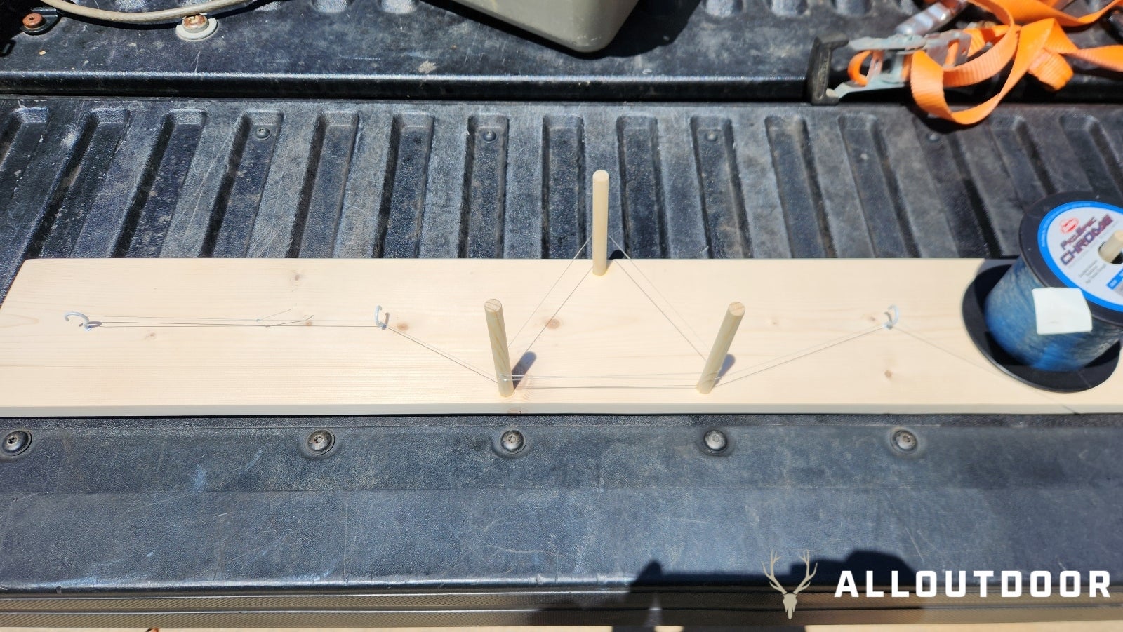 Now, step one of constructing your rig board is to chop a 36-inch piece of board. For those who additionally purchased a reject bin piece of lumber, now you need to give it sanding to clean out the floor and clear it up. You need a clean floor with no splinters or sharp edges to snag your fingers or line when you’re making your rigs later.