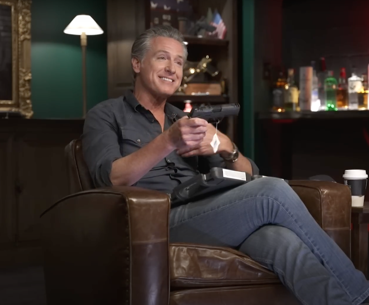 The state of affairs started throughout Newsom’s July look on “The Shawn Ryan Show,” the place host Shawn Ryan, a former Navy SEAL, stunned the governor with a Sig Sauer P365-Xmacro pistol price roughly $700.