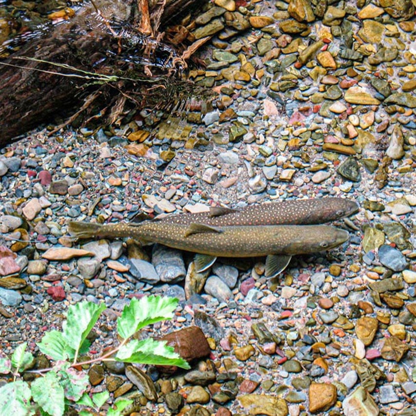 Bull trout pair on a redd in Lolo Nationwide Forest in Montana. Notice the clear gravel, which the fish have scrubbed of algae, a telltale signal of a spawning redd. Photograph: Aubree Benson, used through CC2.0