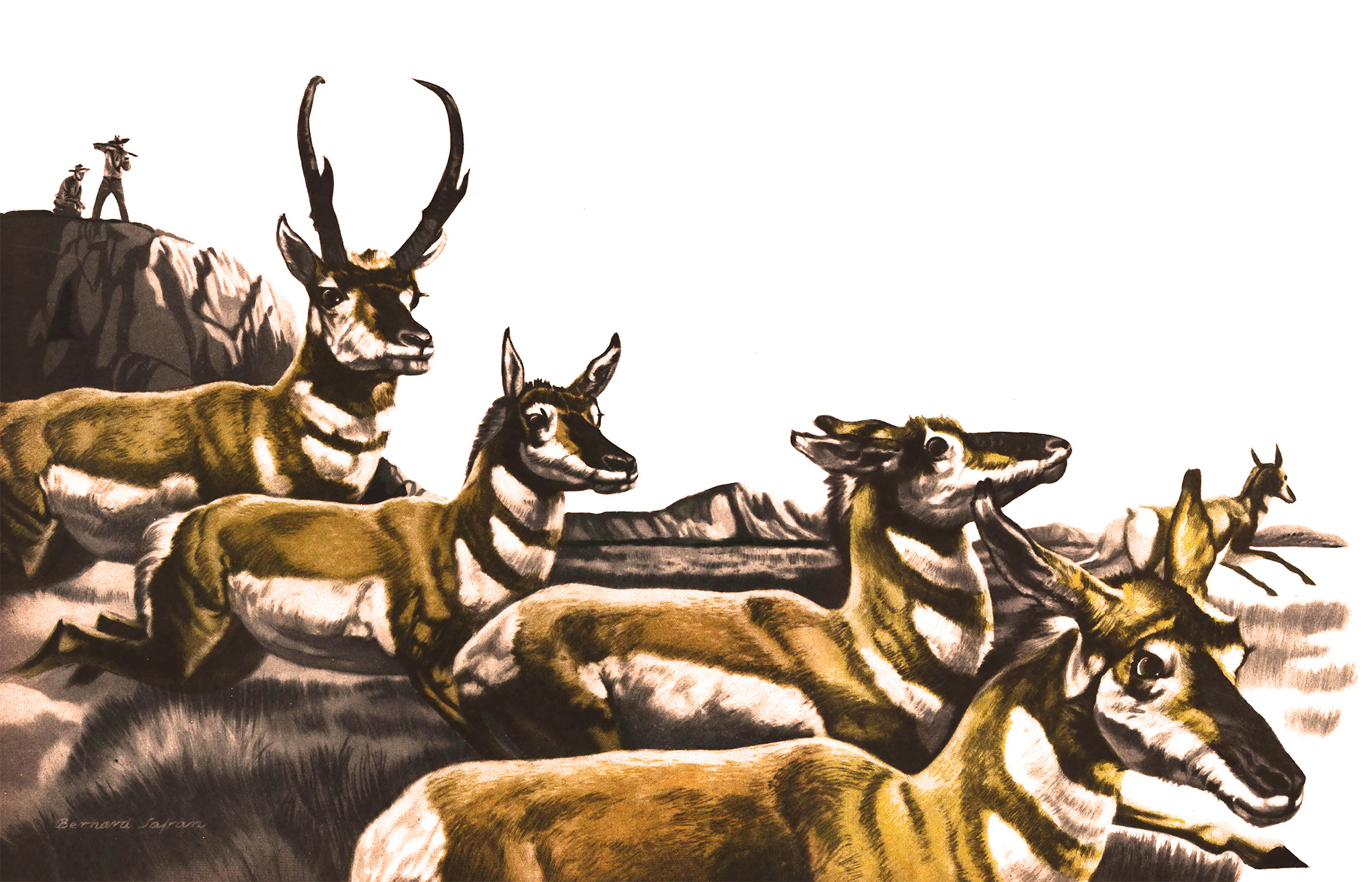 From lengthy expertise, Max outguessed the little band of antelope. They raced for half a mile across the foot of the mountain, then minimize up one of many steep attracts to the rim of the mesa the place we have been stirring the alkali right into a smoking fog. They topped the rise lower than 100 yards away.