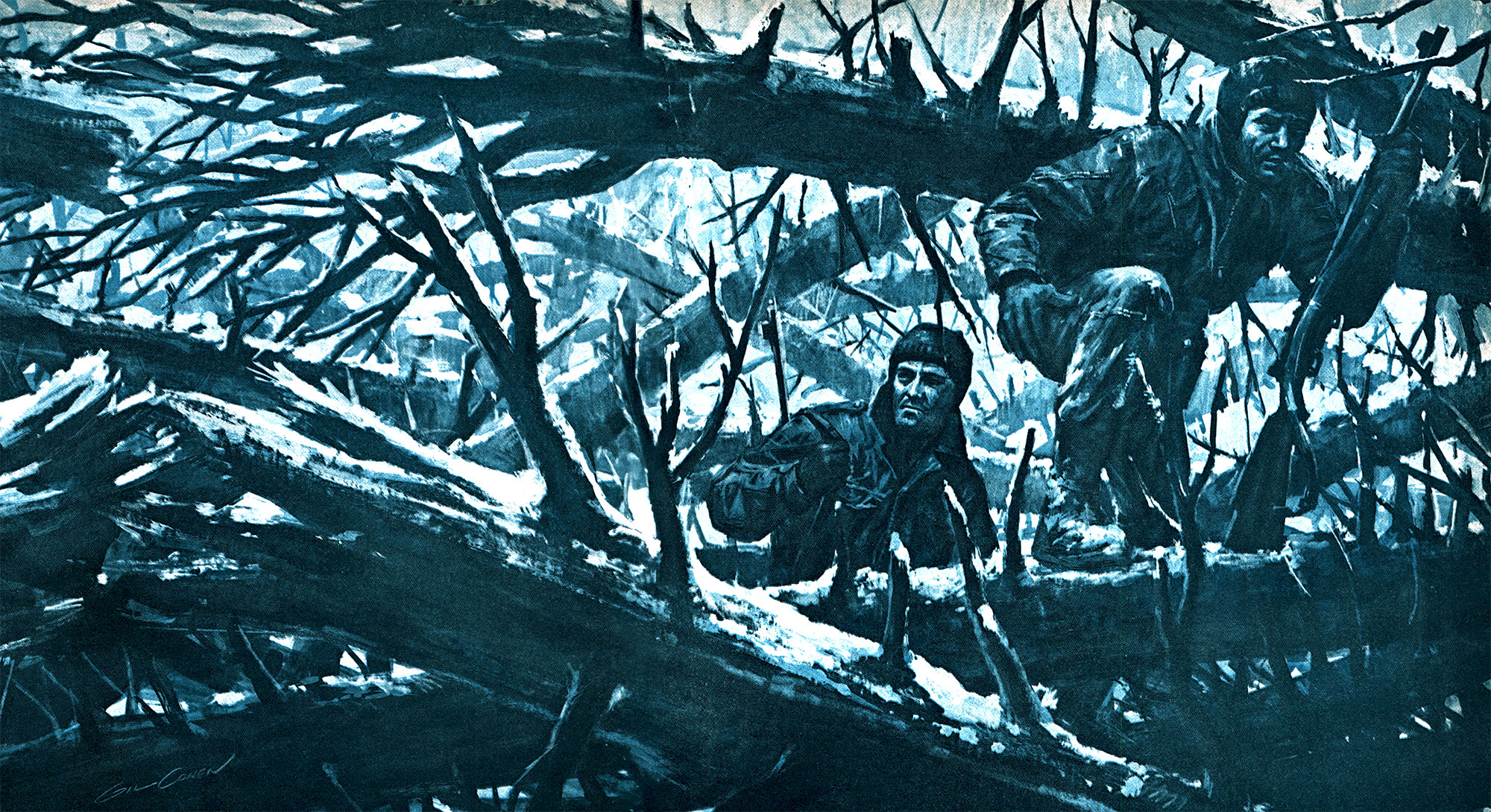 It grew darkish shortly. We may discover no shelter, so every of us lastly selected a giant tree to face beside and stamped our toes to remain awake and to maintain them from freezing. The night time turned colder, and rain fell steadily. In all the times that adopted we didn’t once more undergo as a lot from chilly and moist as we did that first night time. Maybe we simply grew accustomed to the discomfort.