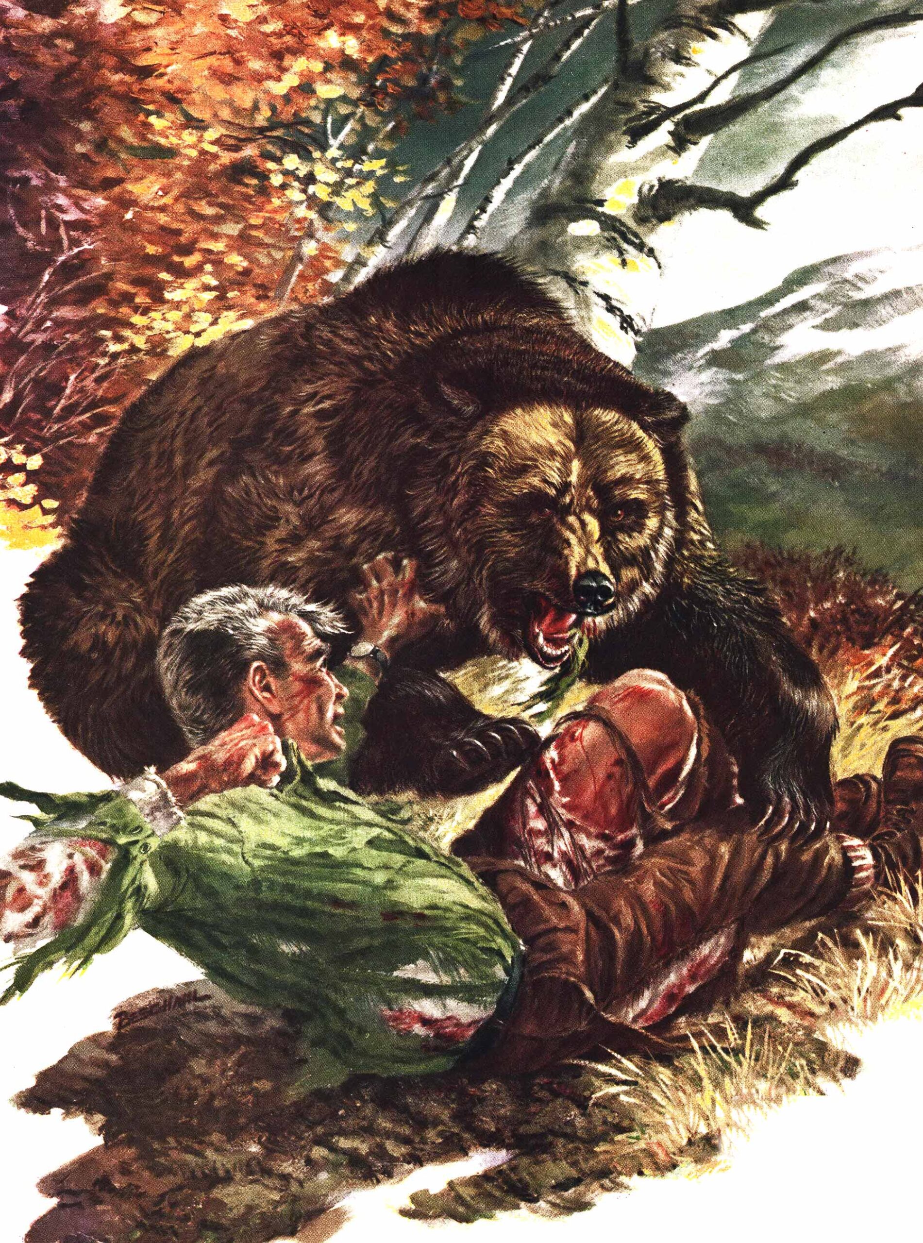 He didn’t idiot round. He sank his enamel into the again of my proper leg simply above the knee and pulled me down with one savage yank. I landed on my again, and we tussled for a couple of seconds. I wound up in a sitting place, with the bear’s left entrance leg throughout each of mine, pinning me to the bottom. Along with his enamel, he grabbed me·by the within of the thigh slightly below the crotch, and in a single deep, deliberate chew tore away a strip of flesh. Blood spurted, and I braced my self with my left arm and pummeled him within the face with my fist, however he paid no extra consideration than to a fly buzzing round his head.