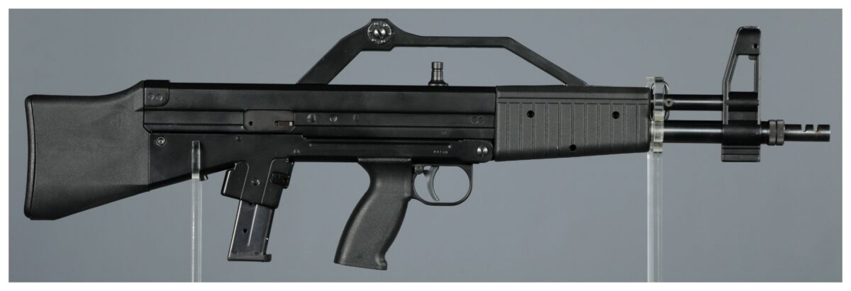 Welcome to in the present day’s Photo of the Day! Within the mid-Nineteen Eighties, Alfonso Giambelli developed a particular bullpup carbine in Milan, Italy. His creation, the Algimec AGM-1 (the title derived from his initials), mixed a easy blowback operation with an 18-inch barrel in a compact 27-inch total size. Although initially meant for Italian regulation enforcement, the AGM-1 discovered its strategy to civilian markets as a substitute. Whereas marketed in quite a few calibers together with 9mm Parabellum, .45 ACP, and varied .22 variants, most have been made in both 9x19mm for U.S. export or 9x21mm for the Italian market, the place navy calibers have been restricted. The carbine cleverly used modified Browning Hello-Energy magazines. Some AGM-1s entered the U.S. totally marked from Italy, whereas others have been assembled stateside from imported components. Regardless of its restricted manufacturing run of round 150 items, the carbine gained sufficient discover to be particularly named in a number of U.S. state assault weapon bans earlier than imports ceased in 1989.