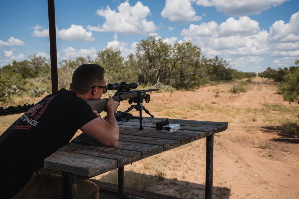 So, we mentioned plenty of the weather that you just wish to take a look at and look out for at any time when you might be buying a brand new riflescope for a firearm in your arsenal, however now we wish to speak in regards to the total vary expertise. Whereas we have been in Uvalde, Texas testing this optic, it was 100 levels outdoors. So, any little bit of shade we may discover was our good friend. With a bench setup beneath a cover, we started the method of sighting in a number of rifles that our searching celebration could be taking out on a pig hunt the subsequent day.