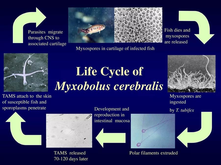 Life Cycle of Myxobolus cerebralis, the parasite that causes whirling illness. through mtpr.org